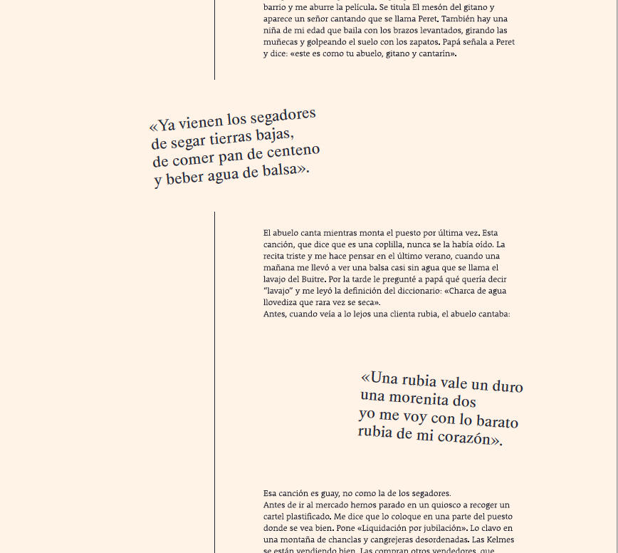 Extracción de la representación web de “hijas de nadie”. conjunto de historias que comparten verdad y ficción, en esas se muestra una “verdad”, la vida real, el día a día, por otro lado se narran estas historias como si te la contase tu abuela, por ello esta estética tan de “casa de pueblo”